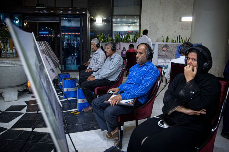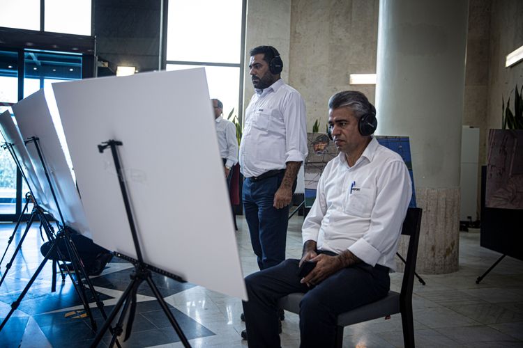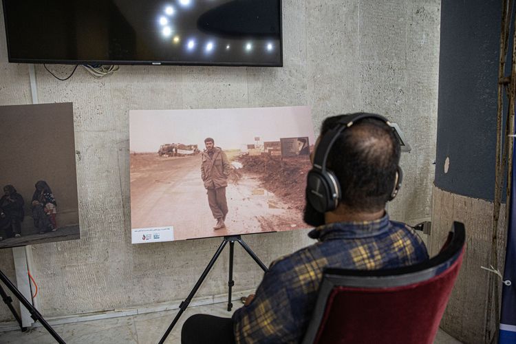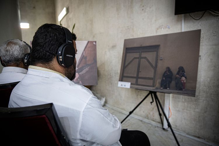 در این نمایشگاه عکسهایی از دوران دفاع مقدس به نمایش گذاشته شده است و بازدید کنندگان میتوانند با استفاده از هدفونهای مخصوص، روایت این تابلوها را بشنوند.