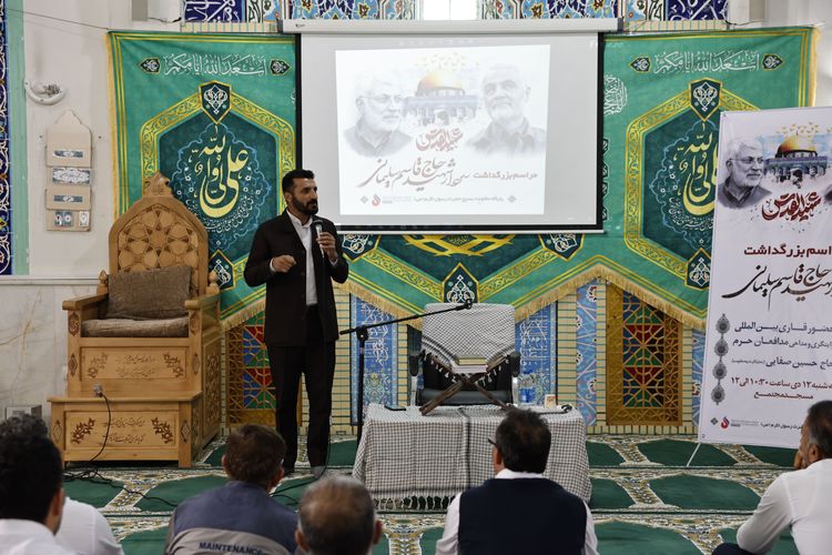 حاج حسین صفایی جانباز مدافع حرم و تحلیلگر جبهه مقاومت، بهعنوان سخنران ویژه این مراسم نیز به بیان فضایل اخلاقی، اجتماعی و سیاسی و سیره زندگی حاج قاسم پرداخت.
