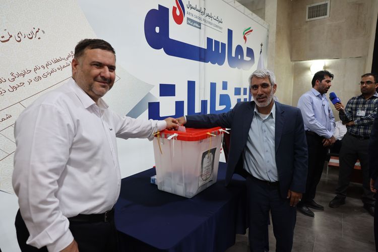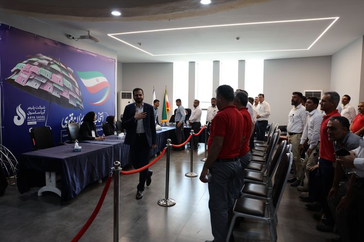 محمدرضا حیدرزاده، مدیرعامل شرکت، در کنار همکاران خود، همچون مرحله اول این دوره از انتخابات، رأی خود را به صندوق حاضر در شرکت پلیمر آریاساسول انداخت.